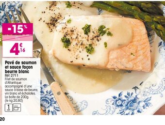 | Pavé de saumon et sauce façon beurre blanc Réf: 2711 Filet de saumon d'Atlantique accompagné d'une sauce à base de beurre, | Croque Gel | 4,90 € | 4,16 € | 0,74 € Réduction | 02 octobre 2023 | 27 octobre 2023 | |