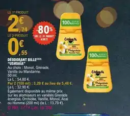| 2 | USHUAÏA Déodorant bille 100 ml | E.Leclerc | 5,48 € | 3,29 € | -80% sur le 2e | 16 décembre 2025 | 27 décembre 2025 | Voir l'offre | |