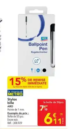 | 2 | ARO Stylos bille | METRO | 7,19 € | 6,11 € | 15% De Remise | 05 janvier 2026 | 28 janvier 2026 | Voir l'offre | |