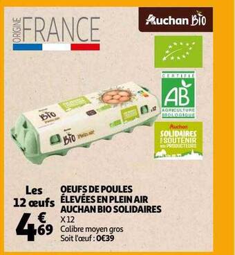 | AUCHAN BIO Oeufs de poules élevées en plein air | Auchan | 3,99 € | 14 octobre 2025 | 25 octobre 2025 | |||