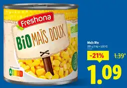 | Freshona Maïs doux Bio | Lidl | 2,09 € | 0,83 € | 1,26 € Réduction | 29 octobre 2025 | 05 novembre 2025 | |