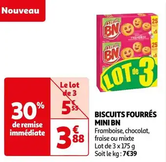| Biscuits fourrés mini bn | Auchan | 4,99 € | 3,29 € | 1,70 € Réduction | 07 septembre 2022 | 13 septembre 2022 | |