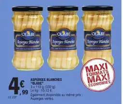 | 1 | OLABE Asperges blanches 330 g | E.Leclerc | 4,99 € | 03 mars 2026 | 14 mars 2026 | Voir l'offre | |||