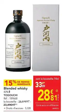 | 1 | Blended whisky togouchi 70 cl | METRO | 33,89 € | 28,81 € | 15% DE REMISE | 23 janvier 2026 | 28 janvier 2026 | Voir l'offre | |