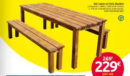 | Set repas en bois Banket | Mr Bricolage | 269,00 € | 229,00 € | 40,00 € Réduction | 18 février 2026 | 15 mars 2026 | |