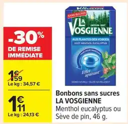 Carrefour LA VOSGIENNE Bonbons sans sucres offreLA VOSGIENNE Bonbons sans sucres 46 gCarrefour2,49 €1,74 €-30%07 avril 202521 avril 2025