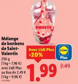 | Mélange de bonbons de Saint- Valentin 250 g | Lidl | 2,49 € | 1,99 € | -20% | 05 février 2026 | 11 février 2026 | |