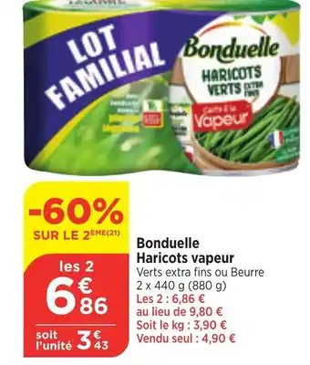 | Bonduelle Haricots vapeur | Bi1 | 6,86 € | 3,43 € | 3,43 € Réduction | 21 juin 2023 | 26 juin 2023 | |