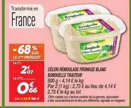 | Céleri rémoulade fromage blanc bonduelle traiteur 1 kg | Netto | 4,14 € | 2,73 € | 1,41 € Réduction | 17 mars 2026 | 23 mars 2026 | |