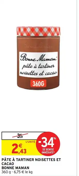 | BONNE MAMAN Pâte à tartiner noisettes et cacao sans huile de palme 580 g | Intermarché Hyper | 5,99 € | 1,91 € | -68% de remise | 07 octobre 2025 | 19 octobre 2025 | |