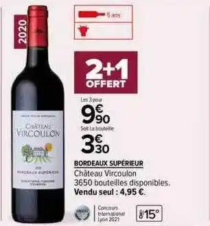 | LA CAVE D'AUGUSTINA.O.P. Bordeaux 75 cl | Carrefour | 5,62 € | 2,81 € | -50% SUR LE 2ÈME | 01 juillet 2025 | 14 juillet 2025 | |