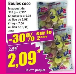 | 1 | Boules coco 360 g | Norma | 2,99 € | 2,09 € | -30% sur le 2ème | 21 janvier 2026 | 27 janvier 2026 | Voir l'offre | |