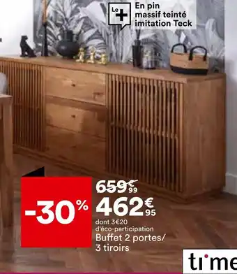| Buffet 2 portes | BUT | 341,13 € | 329,99 € | 11,14 € Réduction | 06 octobre 2025 | 25 octobre 2025 | |