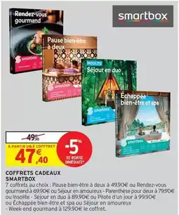 | Smartbox coffrets cadeaux | Intermarché Hyper | 89,90 € | 85,40 € | -5% de remise | 09 décembre 2025 | 21 décembre 2025 | |