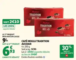 | Café moulu tradition auchan 1000 g | Auchan | 9,90 € | 6,93 € | -30% SUR LE 2EME | 21 avril 2026 | 02 mai 2026 | |