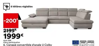 BUT Canapé d'angle convertible angle U tissu Colby offreCanapé d'angle convertible angle U tissu ColbyBUT2 199,00 €1 999,00 €200,00 € Réduction27 octobre 202501 janvier 2026