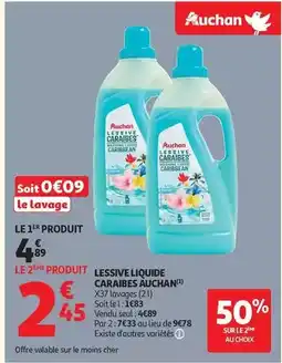 | AUCHAN Lessive liquide caraïbes | Auchan | 4,89 € | 2,44 € | 50% SUR LE 2ÈME | 09 septembre 2025 | 21 septembre 2025 |