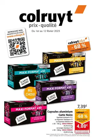 | Capsules Aluminium Carte Noire | Colruyt | 7,39 € | 4,88 € | 2,51 € Réduction | 01 février 2023 | 12 février 2023 | |