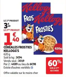 | Céréales frosties kellogg's 620 g | Auchan | 3,49 € | 1,40 € | 2,09 € Réduction | 03 février 2026 | 15 février 2026 | |