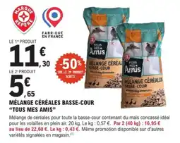 | Mélange céréales basse-cour tous mes amis 20 kg | E.Leclerc Brico | 11,30 € | 5,65 € | -50% SUR LE 2EME | 20 mai 2025 | 31 mai 2025 |