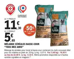 | TOUS MES AMIS Mélange céréales basse- cour 20 kg | E.Leclerc Jardi | 11,30 € | 5,65 € | 5,65 € Réduction | 28 octobre 2025 | 08 novembre 2025 | |