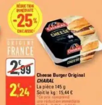 | Cheese Burger Original CHARAL | G20 | 2,99 € | 2,24 € | 0,75 € Réduction | 23 août 2023 | 03 septembre 2023 | |