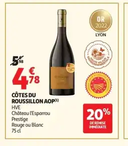 | CHÂTEAU L'ESPARROU Côtes du roussillon aop 75 cl | Auchan | 5,98 € | 4,78 € | 20% De Remise | 26 décembre 2025 | 04 janvier 2026 | |