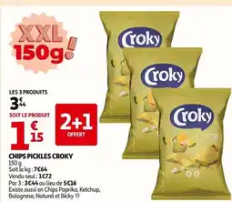 | CROKY Chips pickles 450 g | Auchan | 5,16 € | 3,44 € | 2+1 Offert | 26 décembre 2025 | 05 janvier 2026 | |