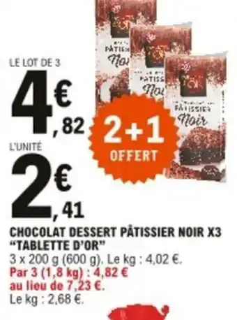| TABLETTE D'OR Chocolat noir dessert pâtissier lot de 3 600 g | E.Leclerc | 5,31 € | 4,25 € | 20% | 04 novembre 2025 | 15 novembre 2025 | |