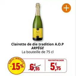 | 1 | Clairette de die tradition a.o.p arpège 75 cl | Coccinelle Supermarché | 5,98 € | 4,78 € | -20% | 28 janvier 2026 | 08 février 2026 | Voir l'offre | |
