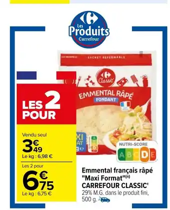 | CARREFOUR CLASSIC Emmental râpé Maxi Format 500 g | Carrefour | 4,09 € | 21 août 2025 | 06 septembre 2025 | |||