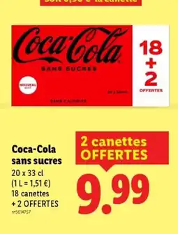| COCA-COLA sans sucres 20 x 33 cl | Lidl | 10,10 € | 2 canettes OFFERTES | 02 octobre 2025 | 08 octobre 2025 | ||