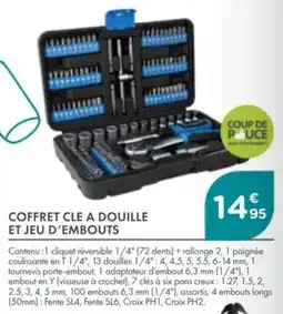| Coffret cle a douille et jeu d'embouts | Point Vert | 14,95 € | 13 avril 2026 | 25 avril 2026 | |||