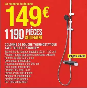 | Colonne De Douche Thermostatique Avec Tablette "Achray" | Brico Dépôt | 149,00 € | 02 février 2023 | 23 février 2023 | |||