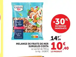 | 5 | Costa - melange de fruits de mer surgeles | Hyper U | 14,99 € | 10,40 € | 4,59 € Réduction | 24 février 2026 | 08 mars 2026 | Voir l'offre |