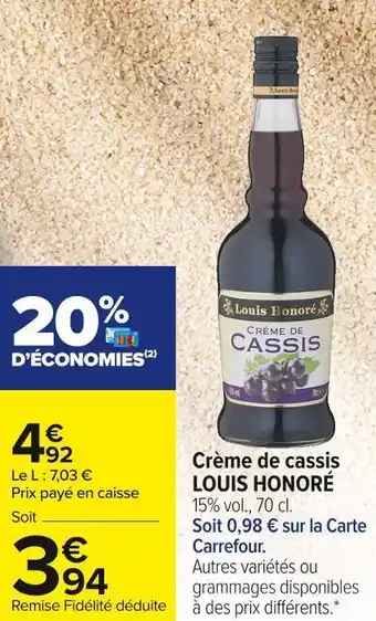 | Crème de cassis LOUIS HONORÉ | Carrefour Market | 4,99 € | 08 juillet 2024 | 21 juillet 2024 | |||