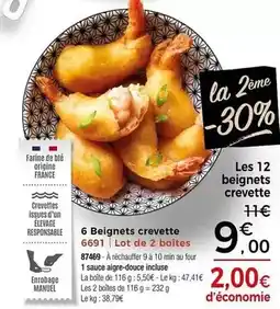 | 2 | 6 beignets crevette | Thiriet | 11,00 € | 06 janvier 2026 | 30 janvier 2026 | Voir l'offre | |||