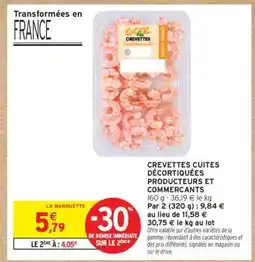 | Crevettes cuites décortiquées producteurs et commercants 160 g | Intermarché Hyper | 5,79 € | 4,05 € | -30% | 04 février 2025 | 16 février 2025 | |