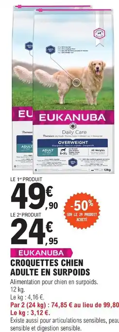 | Croquettes Chien Adulte en Surpoids | E.Leclerc Jardi | 49,90 € | 24,95 € | 24,95 € Réduction | 25 octobre 2022 | 05 novembre 2022 | |