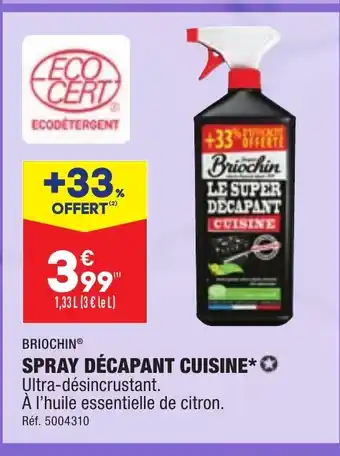 | BRIOCHIN Spray décapant cuisine 1.33 L | ALDI | 3,59 € | 33% offerts | 07 octobre 2025 | 13 octobre 2025 | ||