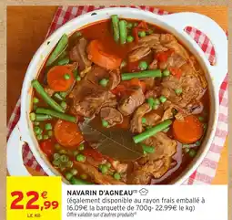 | 1 | Navarin d'agneau 1 kg | Intermarché | 22,99 € | 24 mars 2026 | 06 avril 2026 | Voir l'offre | |||