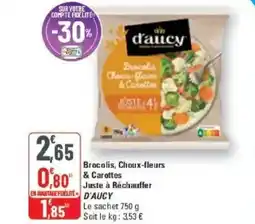 | Brocolis, choux-fleurs & carottes juste à réchauffer d'aucy 750 g | G20 | 2,65 € | 1,85 € | -30% | 28 janvier 2026 | 08 février 2026 | |