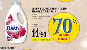 | LESSIVE LIQUIDE 2EN1 «DASH» ENVOLÉE D'AIR FRAIS | E.Leclerc | 11,90 € | 27 juin 2023 | 09 juillet 2023 | |||