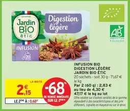 Intermarché Hyper INFUSION BIO DIGESTION LÉGÈRE JARDIN BIO ÉTIC offre