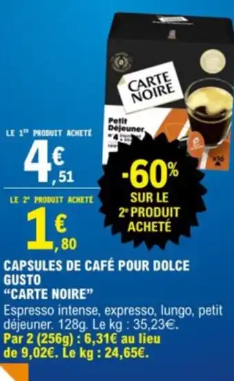 | CAPSULES DE CAFÉ POUR DOLCE GUSTO | E.Leclerc | 4,51 € | 1,80 € | 2,71 € Réduction | 05 juin 2023 | 18 juin 2023 | |
