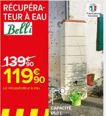 | BELLI Récupérateur à eau décoratif 300 L | Carrefour Market | 79,99 € | 69,99 € | 10,00 € Réduction | 20 mai 2024 | 02 juin 2024 | |
