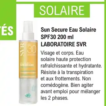 | Sun Secure Eau Solaire SPF30 200 ml LABORATOIRE SVR | E.Leclerc Parapharmacie | 8,00 € | 27 juin 2023 | 22 juillet 2023 | |||