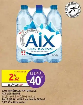 | EAU MINÉRALE NATURELLE AIX LES BAINS | Intermarché Hyper | 5,24 € | 2,62 € | 2,62 € Réduction | 27 décembre 2023 | 07 janvier 2024 | |