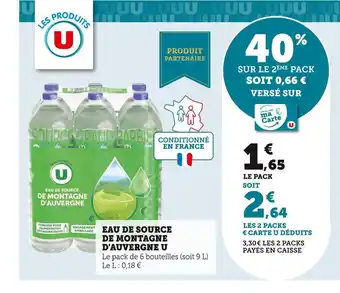 | Eau de source de montagne d'Auvergne U | Super U | 1,69 € | 1,35 € | 0,34 € Réduction | 04 juin 2024 | 16 juin 2024 | |