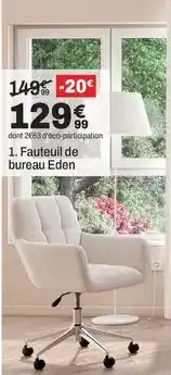 BUT Eden - fauteuil de bureau offreEden - fauteuil de bureauBUT149,99 €129,99 €20,00 € Réduction30 avril 202625 mai 2026